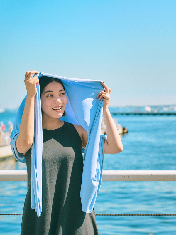 かぶる、巻く、羽織る。頭から肩まで、ひと巻きで涼しく。