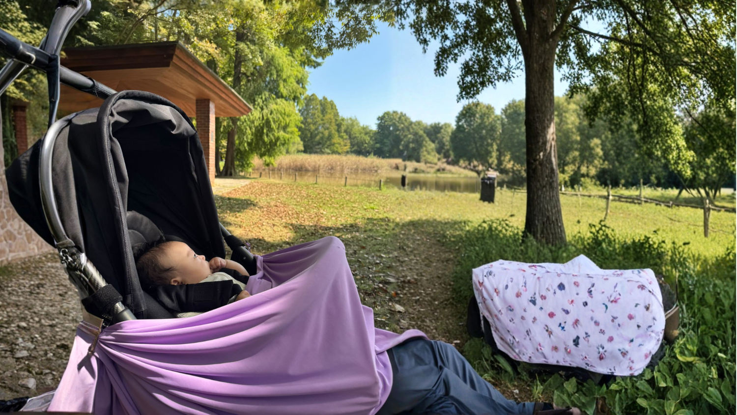 地面の熱を和らげ、赤ちゃんを日差しから守ります。