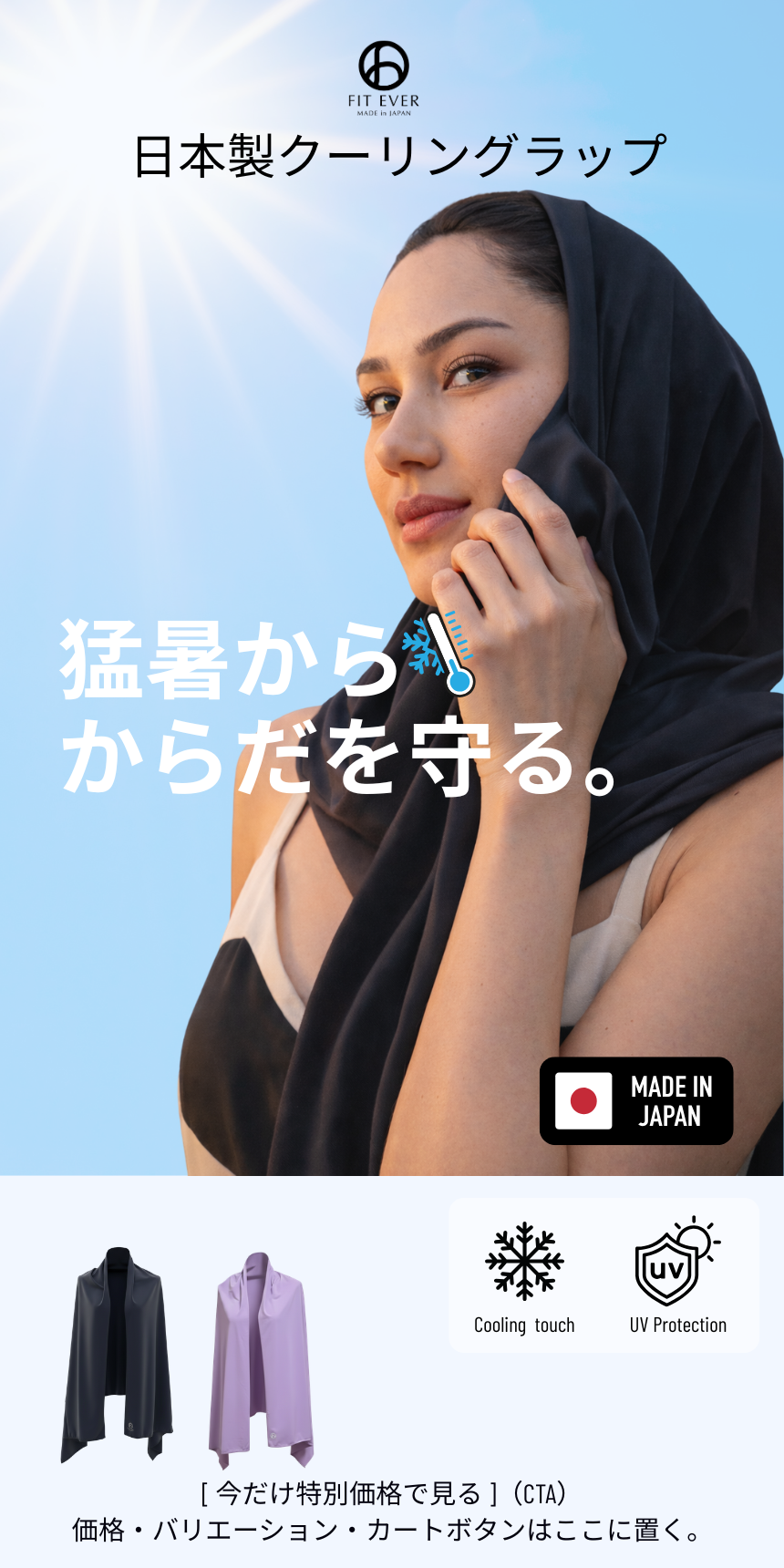 Created by a Japanese female entrepreneur, our products combine advanced Japanese fabric technology with practical innovation, offering cooling scarves and hijabs designed to enhance everyday life.